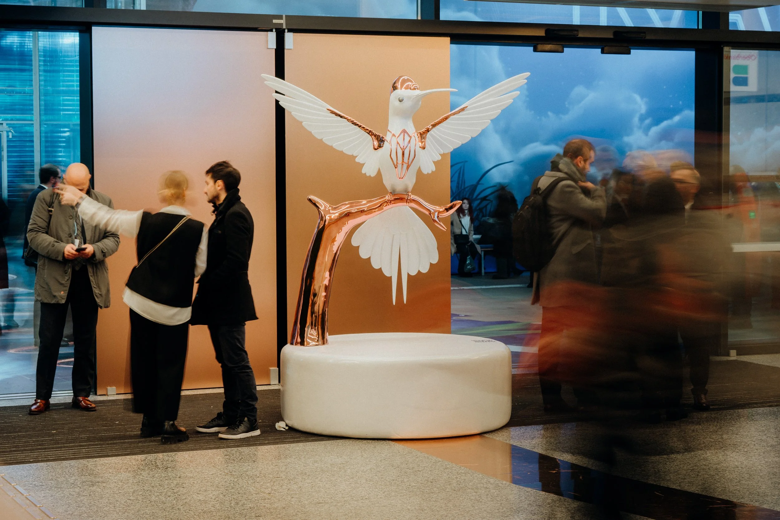Centrepiece was the heart sculpture in the entrance hall that brought the ECR 2025 visual to life. Also featured were three statues of otherworldly creatures that merge the familiar with the unknown – animals intertwined with human body-inspired structures. The kudu’s antlers mirror the bronchial tree, the cougar sports an exoskeleton, and the bird’s headpiece echoes the smooth contours of the kidneys.